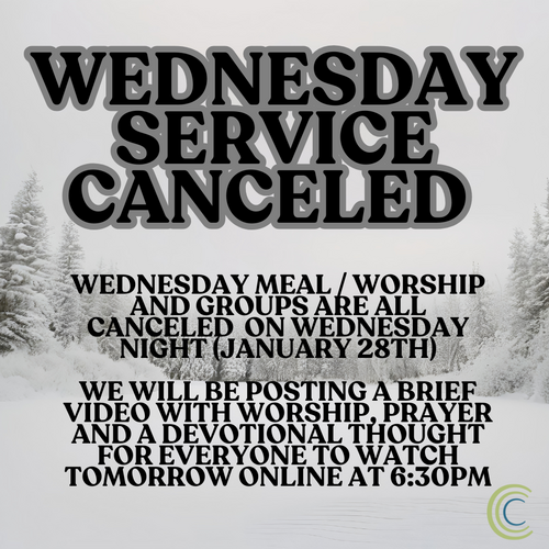 However, we still want to meet with you and encourage you - so we will be posting a video with worship, prayer and a brief devotional thought from our staff, that everyone can watch at home tomorrow at 6:30pm.