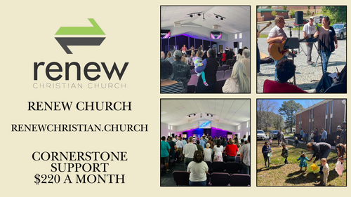 Renew Christian Church is a new church plant in the Raleigh / Durham, NC area. Their mission is to Love God, Love People, and Serve Both. Their vision is to bring healing, hope, and a renewed life in Jesus Christ to all.